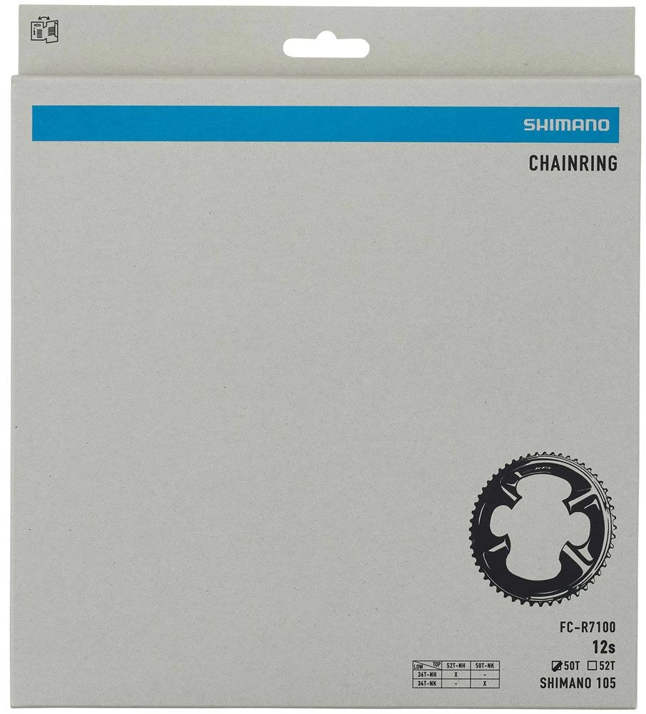 Shimano replacement chainring for 105 FC-R7100 12-speed crankset (NK) with 50/34 teeth.