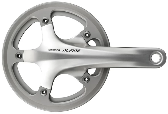 This 2-piece crankset with chain guard is perfect for city and commuter bikes.