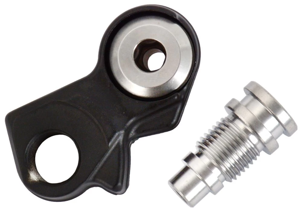 Replacement derailleur bracket and lower mounting bolt for Shimano XT RD-M8000 rear derailleur.