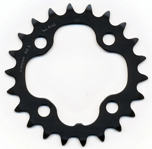 Shimano DEORE chainring with 22 teeth and 64 mm bolt circle for FC-M590 and FC-M591 crank.