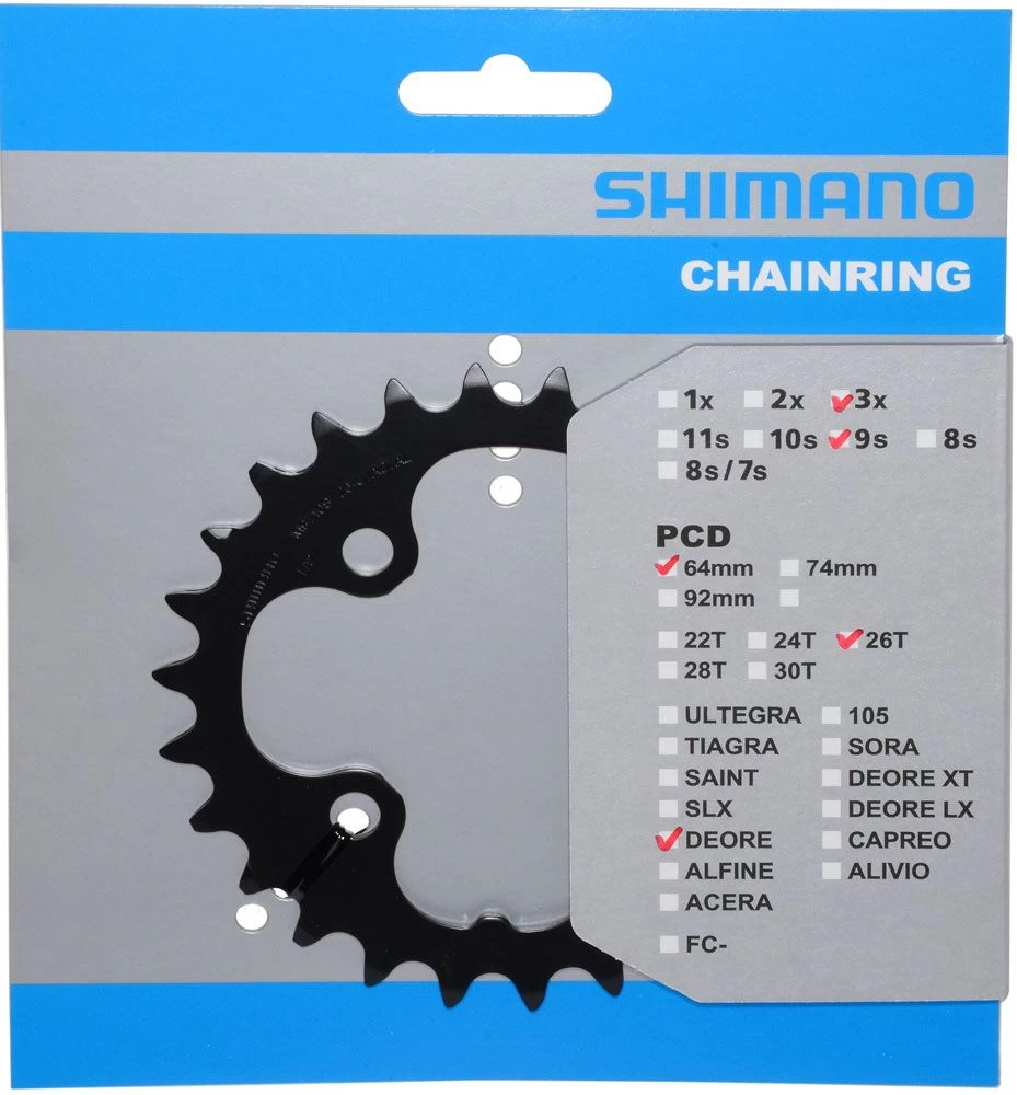 - 1 x Shimano DEORE Chainring for FC-M590/591 26T