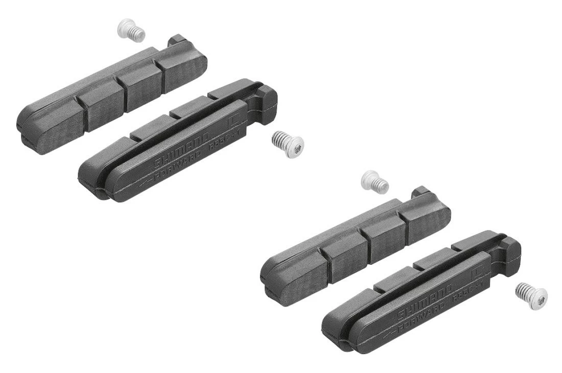 Shimano R55C3 standard brake pads for ceramic rims. The ideal matched material hardness of Shimano cartridge pads for Dura Ace / Ultegra / 105 racing brakes ensures high braking performance with excellent controllability.