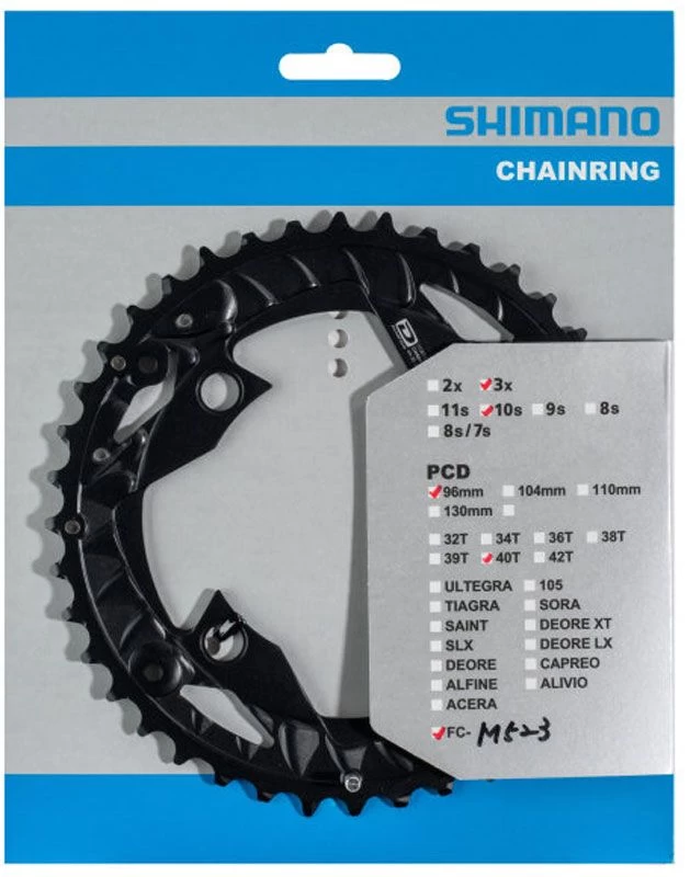 Shimano replacement chainring for FC-M523 and FC-MT500 10-speed crankset with 40/30/22 teeth.