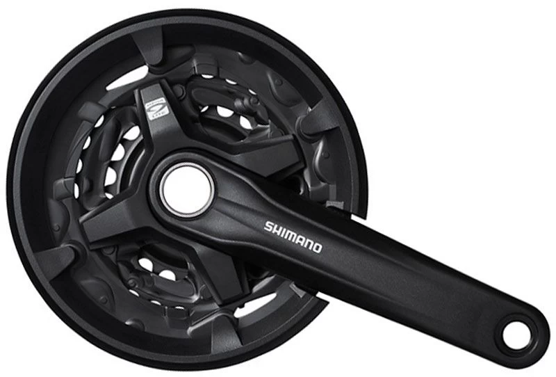 The Shimano FC-MT210 3×9-speed 2-Piece crank with chain guard offers maximum drive efficiency and ensures optimum rhythm.