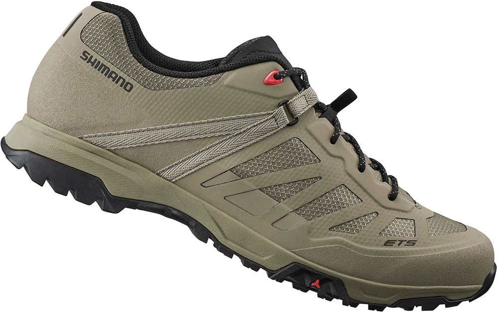 These new e-bike shoes from Shimano are equipped with a semi-rigid midsole plate for efficient power transmission to the pedal. Adaptive lateral grooves in the sole and a special block profile in the toe and heel area provide the necessary grip.