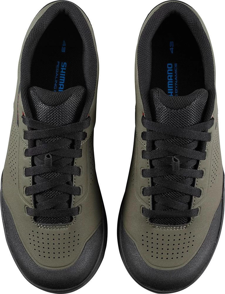 The SH-GR500 flat pedal shoe features grip, protection, comfort, and style for gravity riders. The grippy rubber outsole provides excellent grip on the pedal and ground and the upper made of synthetic leather provides the durability needed for rough terrain.