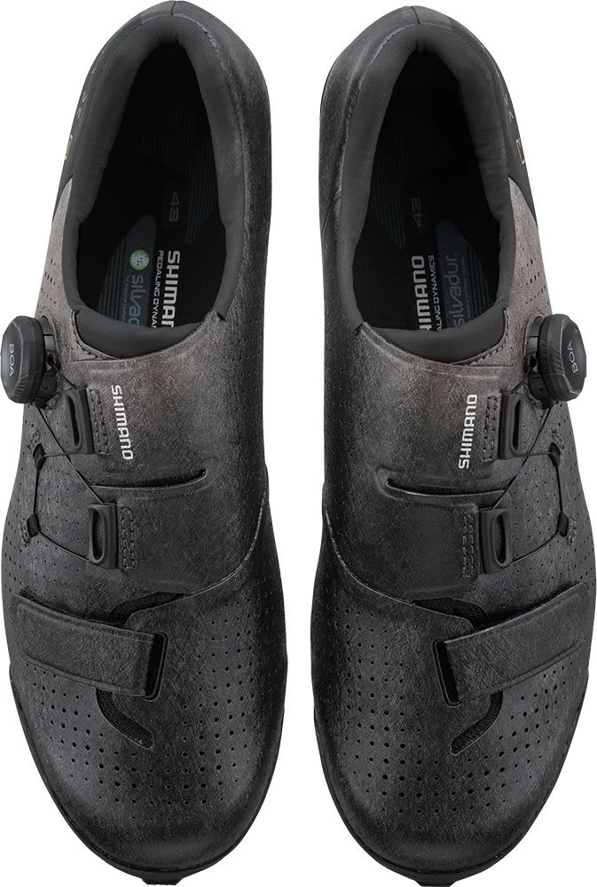 The SH-RX801 is strategically designed for use with SPD pedals and provides maximum pedaling efficiency and stability. An enclosing upper shoe with soft synthetic leather provides holding power and comfort at the same time. For fast and precise fine adjustment, it is equipped with low-profile BOA® Li2 twist locks with rubber grip.