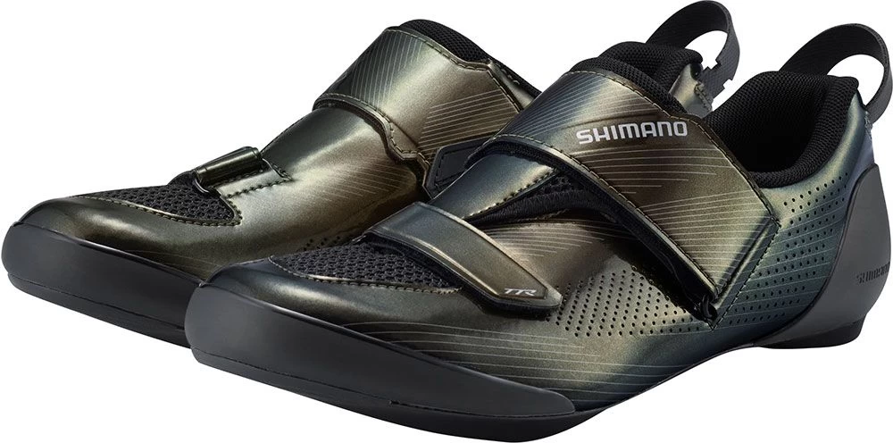 The Shimano TR901 is a pro tri racing shoe designed to optimize power transfer and shorten transitions due to a large heel loop, an extra-upper and T1-Quickstrap closure. A strategically placed mesh insert in combination with side ventilation perforations creates a draft that cools the foot.