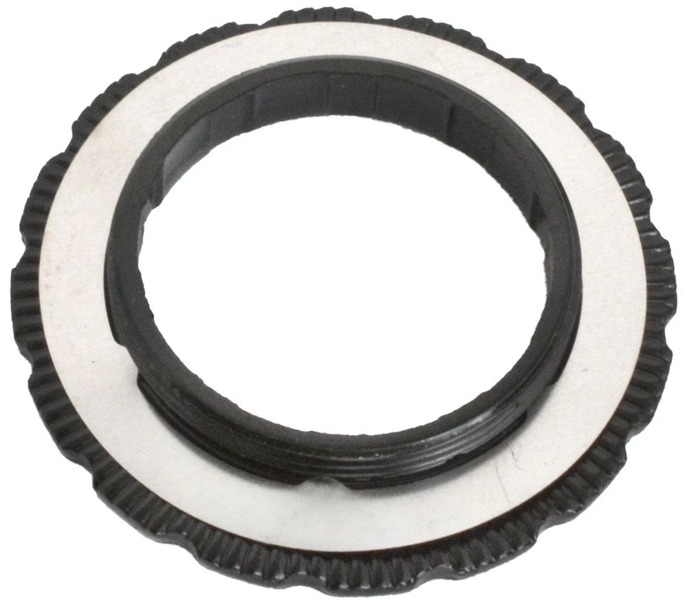 The Shimano SM-RT30 Center-Lock steel lock ring with internal and external tool holder for 15 / 20 mm thru axles.