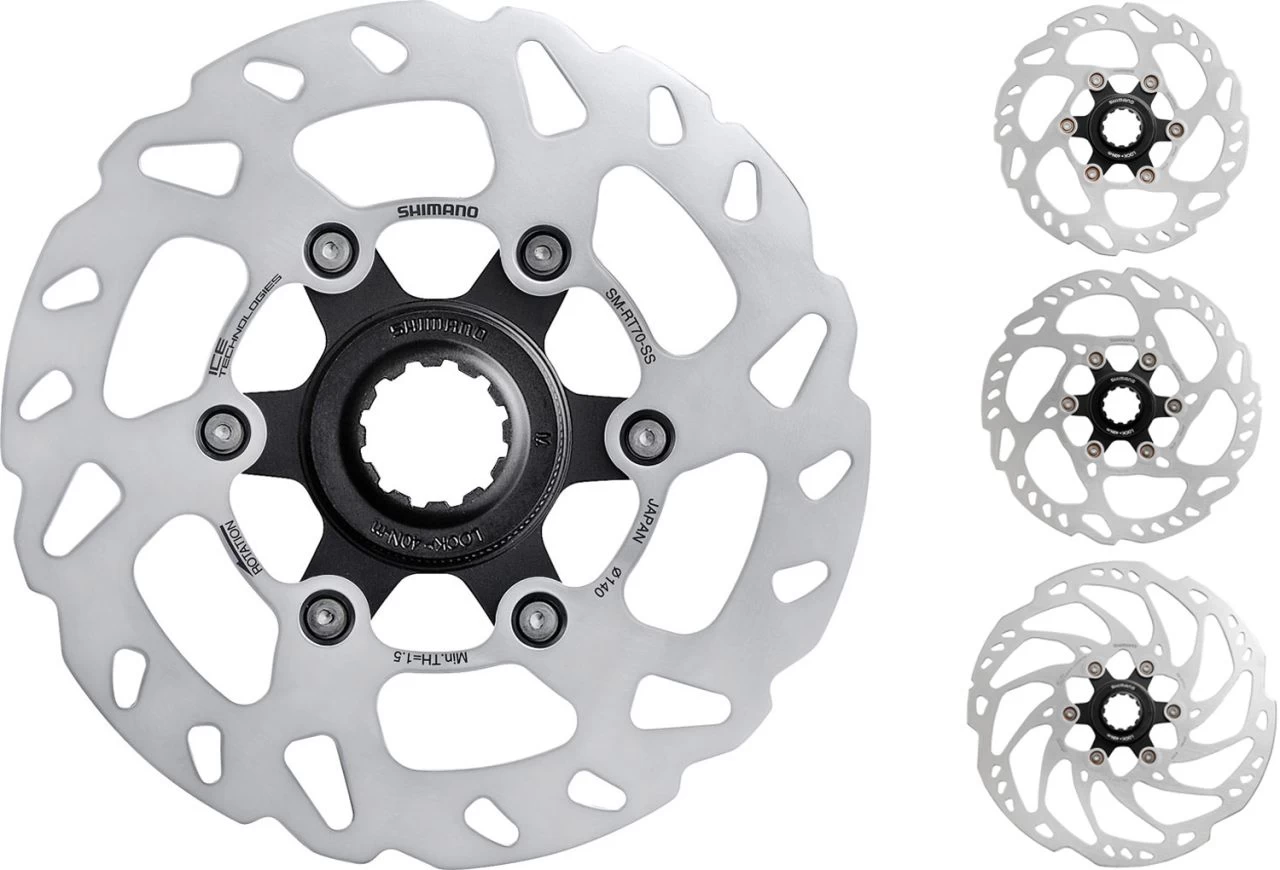 The fade, which can occur to rotor and pad when braking on a long downhill ride for instance, has a negative impact on the braking performance. SHIMANO has adopted ICE TECHNOLOGY Rotor and ICE TECHNOLOGY Pad to realize the cooling technology for consistent performance. The clad rotor blade, which has a 3 layer-sandwich structure of stainless steel, aluminum and stainless steel, provides better radiation performance achieving from 400ËšC to 300ËšC surface temperature. Also, the radiation fin has been adopted for the pad. Moreover, the clad rotor blade and the radiator fin provide long pad life, less noise, less fade and lightweight.