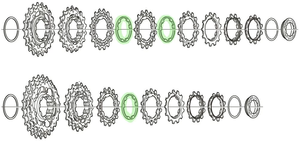 - Sprocket spacer between cogs on 10-speed cassettes