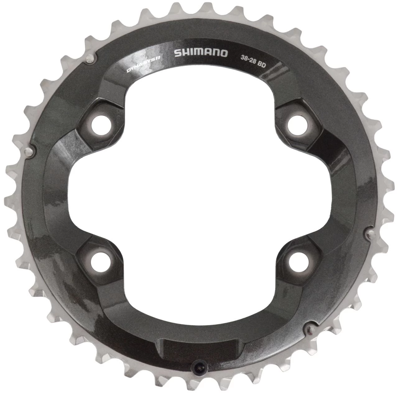 Shimano XT 11-speed chainring with 38 teeth and 96 mm bolt circle for 2-speed FC-M8000 (38-28) crank.